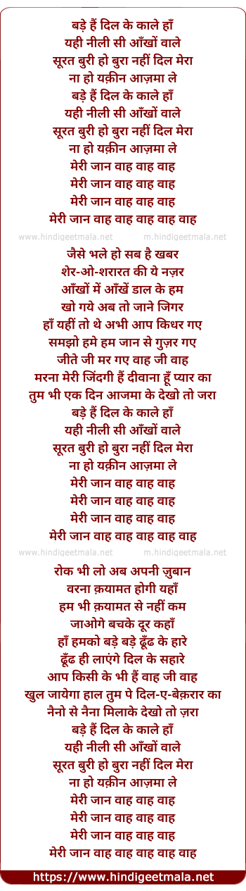 Lyrics of Bade Hain Dil Ke Kaale - बड़े हैं दिल के काले हाँ