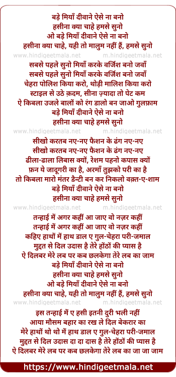 Lyrics of Bade Miya Diwane Aise Na Bano - बड़े मियाँ दीवाने ऐसे ना बनो