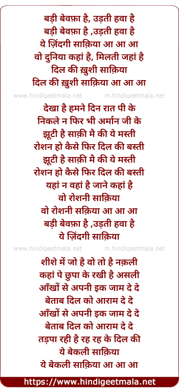 Lyrics of Badi Bewafa Hai, Udati Hawa Hai - बड़ी बेवफ़ा है, उड़ती हवा है