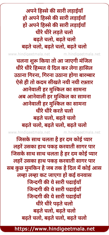 Lyrics of Badhate Chalo - बढ़ते चलो