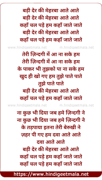 Lyrics of Badi Der Ki Meherban - बड़ी देर की मेहरबा