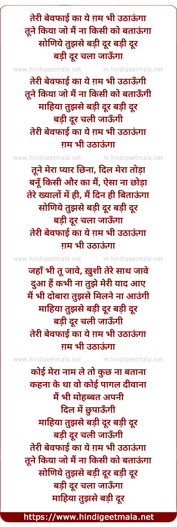 Lyrics of Badi Door Badi Door Chala - तेरी बेवफाई का ये ग़म भी उठाऊंगा