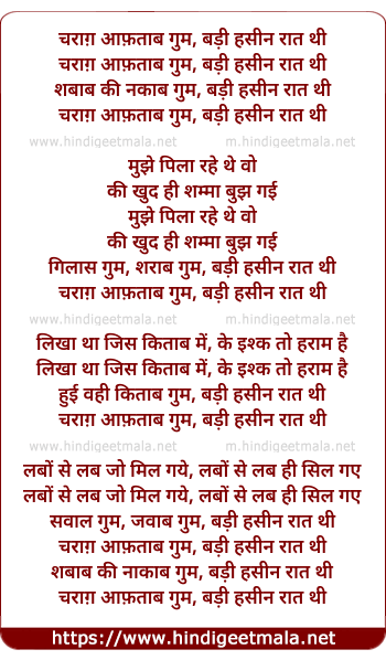 raat thi... Chirag aftab gum badi haseen raat thi... Labo se lab jo mil