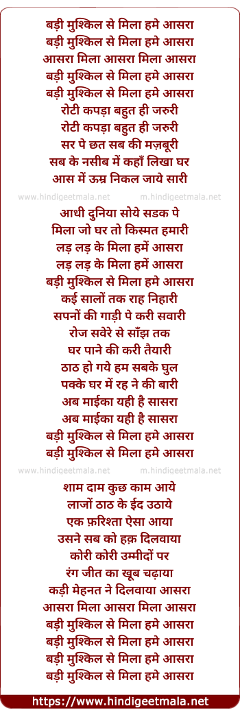 Lyrics of Badi Mushkil Se Mila - बड़ी मुश्किल से मिला