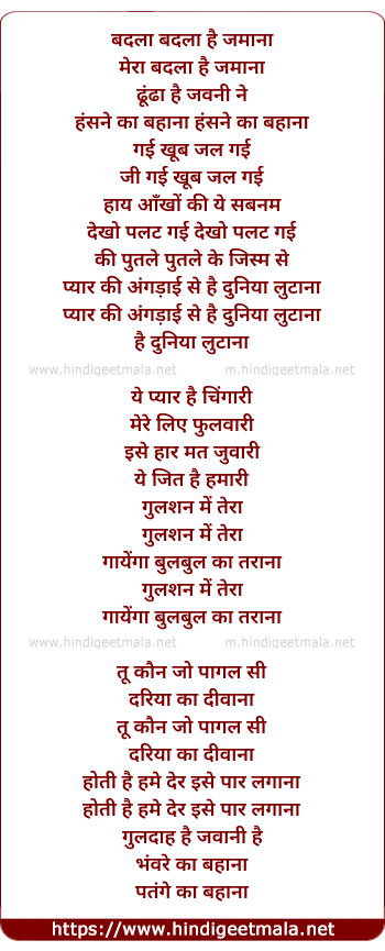 Lyrics of Badla Hai Zamana - बदला है जमाना