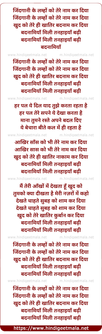 zindagani ke lamhon ko tere naam kar diya