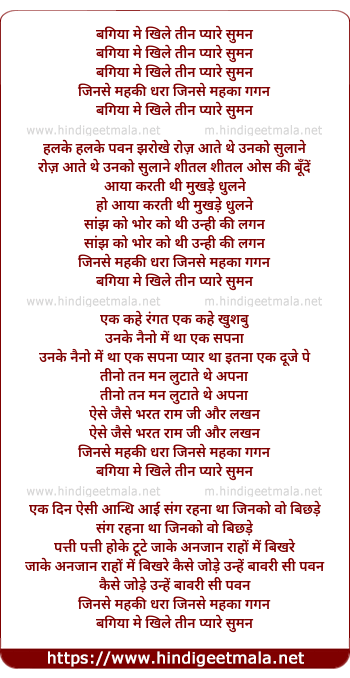 Lyrics of Bagiya Me Khile Teen Pyare Suman - बगिया मे खिले तीन प्यारे सुमन