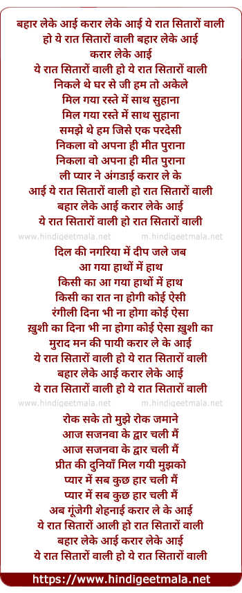bahar leke aayi karar leke aayi ye raat sitaro vali