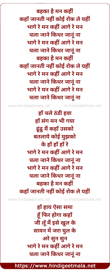 Lyrics of Bahakaa Hai Man Kahin - बहका है मन कहीं