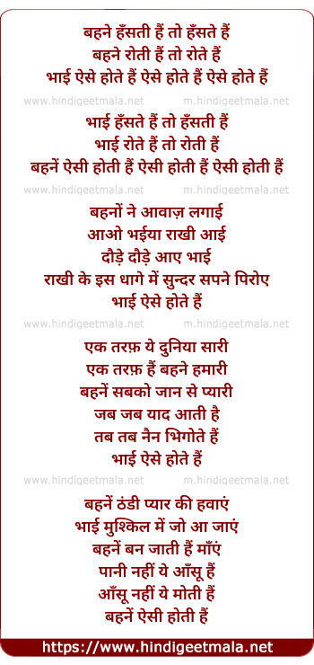Lyrics of Bahane Hansati Hai To Haste Hai - बहने हँसती हैं तो हँसते हैं