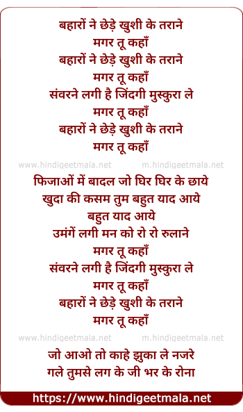 Lyrics of Baharon Ne Chhede Khushi Ke Tarane - बहारों ने छेड़े खुशी के तराने
