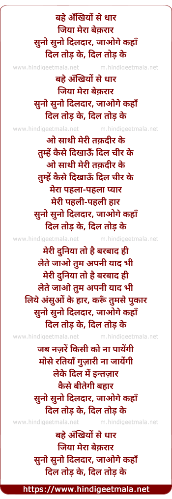 Lyrics of Bahe Ankhiyon Se Dhaar - बहे अँखियों से धार