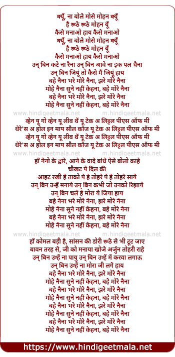 Lyrics of Bahe Naina Bhare More Naina, Jhare More Naina - बहे नैना भरे मोरे नैना, झरे मोरे नैना