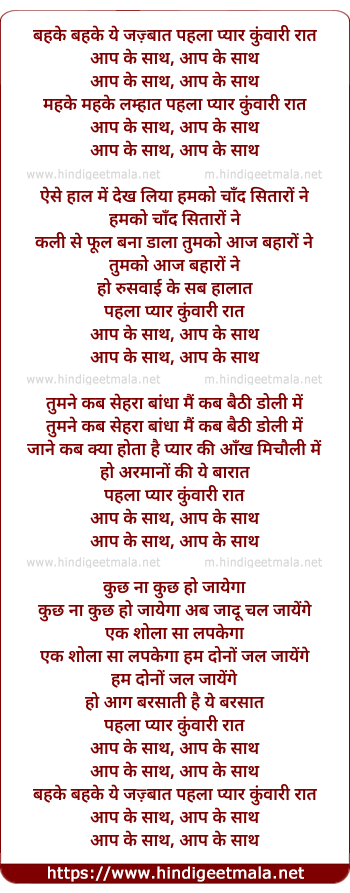 Lyrics of Bahke Bahke Ye Jazbaat, Pehla Pyar Kuwari Raat - बहके बहके ये जज़्बात, पहला प्यार कुंवारी रात