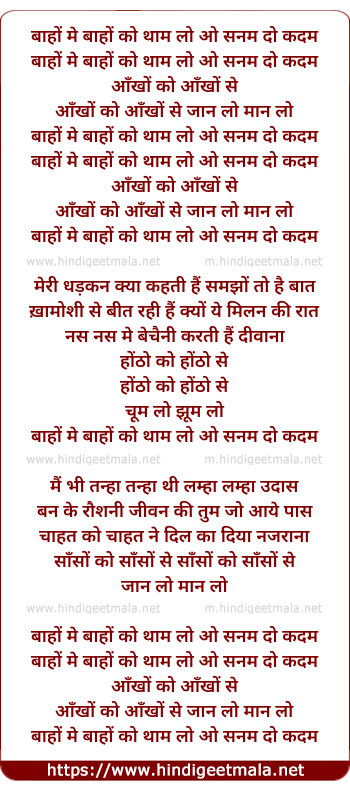Lyrics of Baho Me Baho Ko Tham Lo - बाहों मे बाहों को थाम लो
