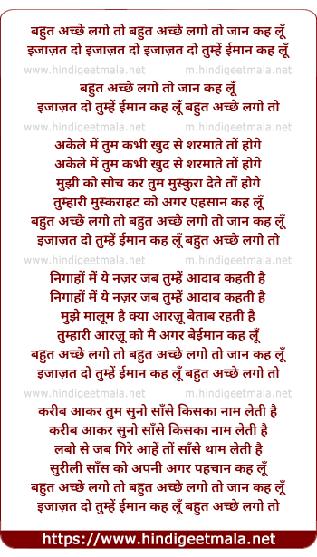 Lyrics of Bahut Achhe Lago To Jaan - बहुत अच्छे लगो तो जान