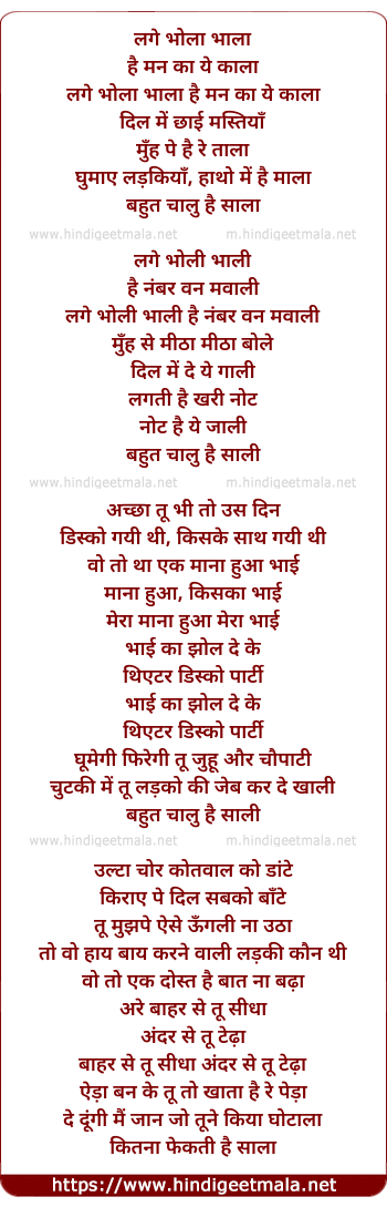 Lyrics of Bahut Chalu Hai Saala - बहुत चालु है साला