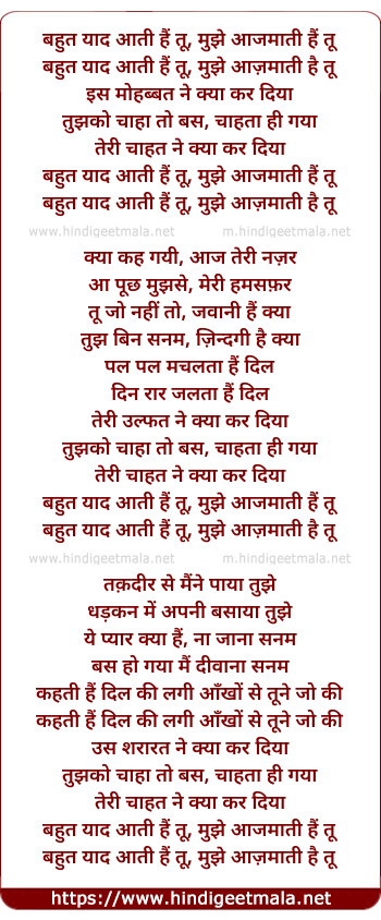Lyrics of Bahut Yaad Aati Hai - बहुत याद आती हैं तू, मुझे आजमाती हैं तू