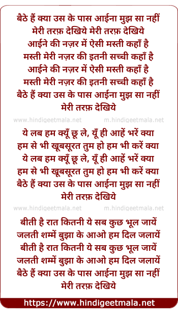 Lyrics of Baithe Hain Kya Us Ke Paas - बैठे हैं क्या उस के पास