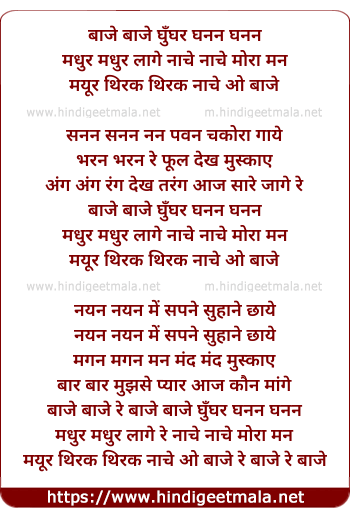 Lyrics of Baje Baje Ghunghar Ghanan Ghanan - बाजे बाजे घुँघर घनन घनन