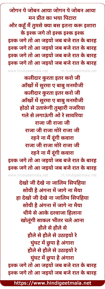Poetic Translation - Lyrics of Baje Raat Ke Baarah - बजे रात के बारह
