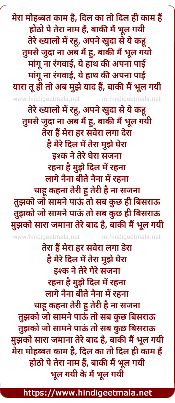 Lyrics of Baki Main Bhool Gayi - बाकी मैं भूल गयी
