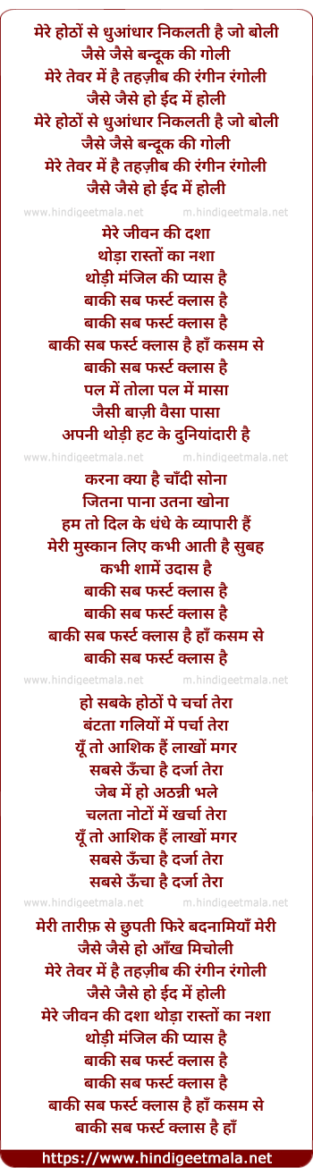 Lyrics of Baki Sab First Class Hai - बाकि सब फस्ट क्लास है