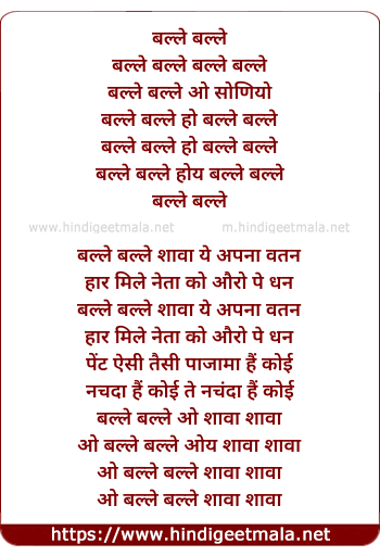 Lyrics of Balle Balle - बल्ले बल्ले