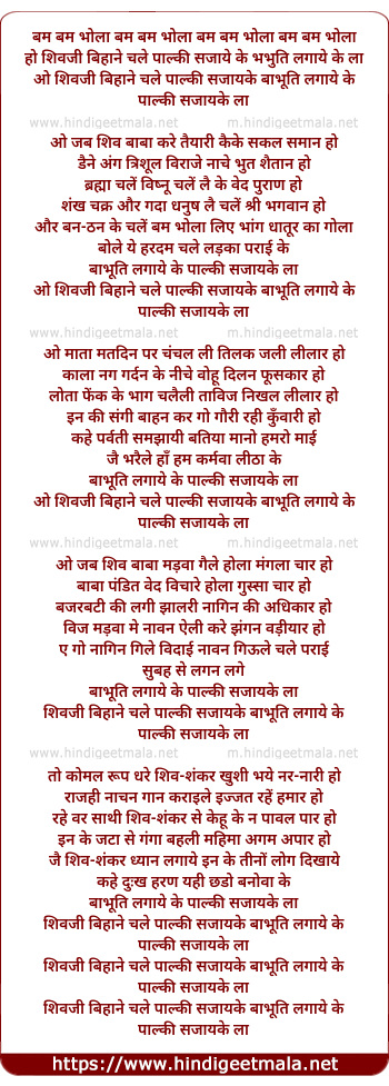ho shivji bihane chale paalki sajayke bhabhuti lagaye ke la