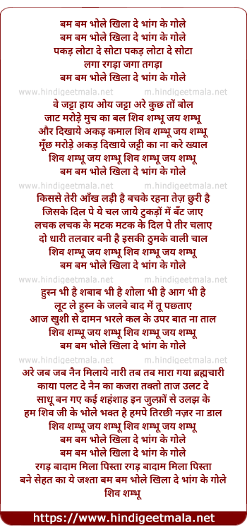 Lyrics of Bam Bam Bhole Khila De Bhang Ke Gole - बम बम भोले खिला दे भांग के गोले