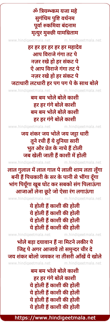 Lyrics of Bam Bam Bole Kashi - बम बम बोले काशी
