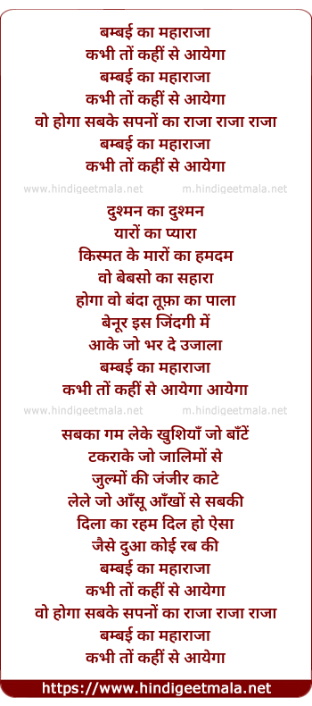 Lyrics of Bambai Ka Maharaja Kabhi To Kahin Se Aayga - बम्बई का महाराजा कभी तो कहीं से आयेगा