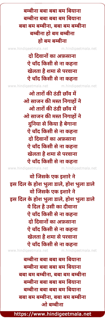 Lyrics of Bambinaa Do Diwano Ka Afasana - बम्बीना दो दिलो का अफसाना