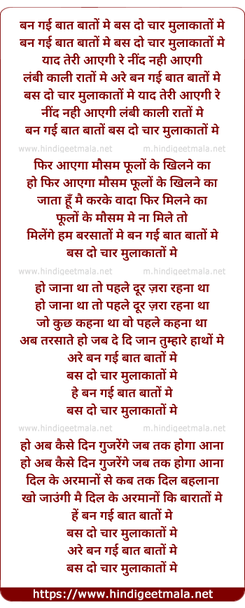 Lyrics of Ban Gayi Baat Baato Me - बन गई बात बातों मे