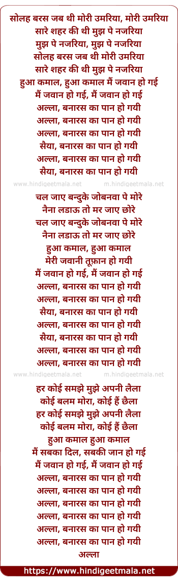 Lyrics of Banaras Ka Paan - बनारस का पान