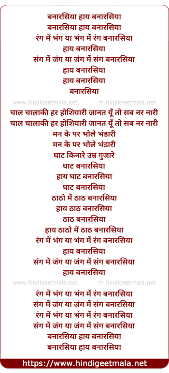 Lyrics of Banarasiya Haye Banarasiya - बनारसिया हाय बनारसिया