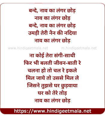 Lyrics of Bande Naav Kaa Langar Chod - बन्दे नाव का लंगर छोड़