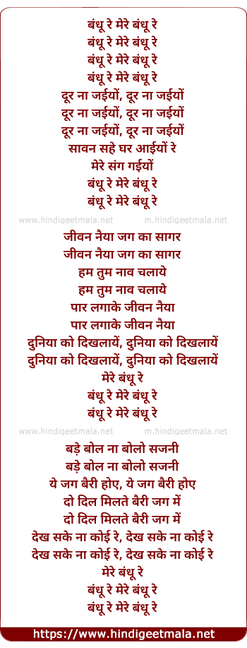 Lyrics of Bandhu Re Mere Bandhu Re - बंधू रे मेरे बंधू रे