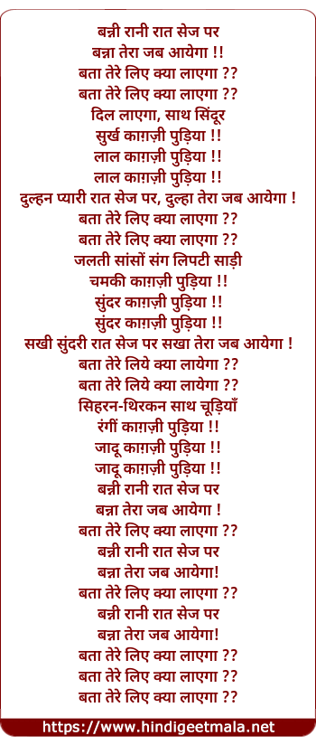 dulhan pyaari raat sej par, dulha tera jab aaega