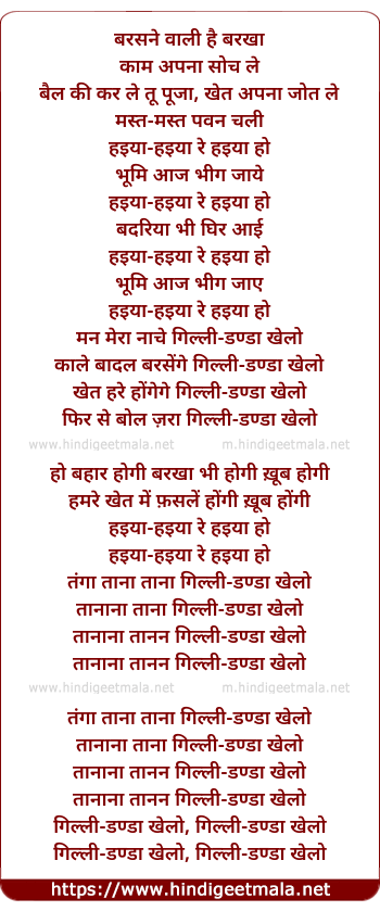 Lyrics of Barasane Vali Hai Barakha - बरसने वाली है बरखा