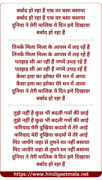 Lyrics of Barbaad Ho Raha Hai Ek Ghar Basa Basaya, Duniya Leti - बर्बाद हो रहा हैं एक घर बसा बसाया