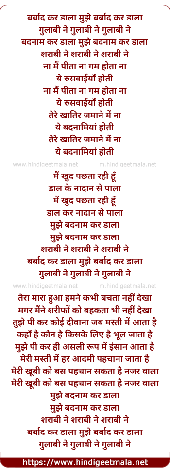 Lyrics of Barbad Kar Daala Mujhe Barbad - बर्बाद कर डाला मुझे बर्बाद कर डाला