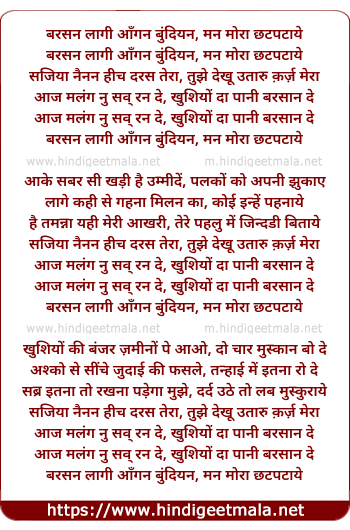 Lyrics of Barsan Laagi Angan - बरसन लागी आँगन