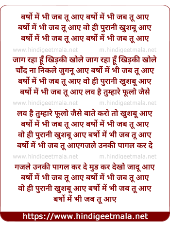 Lyrics of Barso Me Bhi Jab Tu Aaye - बर्षो में भी जब तू आए