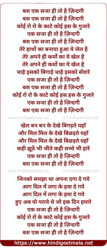 Poetic Translation - Lyrics of Bas Ek Sazaa Hi To Hai Zindagi (2) - बस एक सजा ही तो है ज़िन्दगी