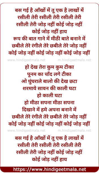 Lyrics of Bas Gayi Hai Ankho Me - बस गई है आँखों में