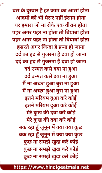 Lyrics of Bas Ke Dushwaar Hai Har Kam Ka - बस के दुस्वार है हर काम का आसां होना