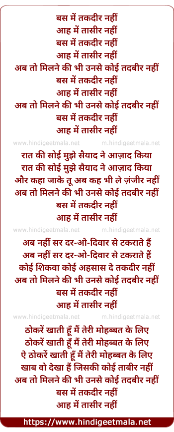 Lyrics of Bas Me Taqdeer Nahi - बस में तकदीर नहीं