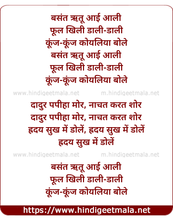 Lyrics of Basant Ritu Aai Aali Phul Khili Daali Daali - बसंत ऋतू आई आली फूल खिली डाली-डाली