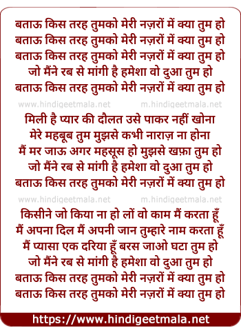 Lyrics of Batoo Kis Tarah Tumako - बताऊ किस तरह तुमको